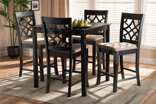 Baxton Studio Darcie Modern and Contemporary Sa... Baxton Studio Darcie Modern and Contemporary Sand Fabric Upholstered Espresso Brown Finished 5-Piece Wood Pub Set