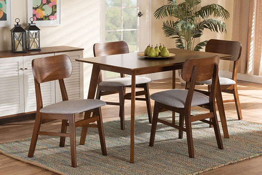 Baxton Studio Sugar Mid-Century Modern Light Gr... Baxton Studio Sugar Mid-Century Modern Light Grey Fabric Upholstered Walnut Wood Finished 5-Piece Dining Set