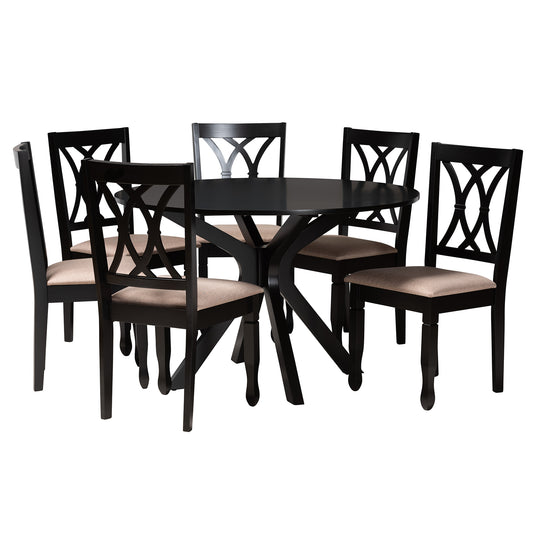 Baxton Studio Maya Modern Beige Fabric and Espr... Baxton Studio Maya Modern Beige Fabric and Espresso Brown Finished Wood 7-Piece Dining Set