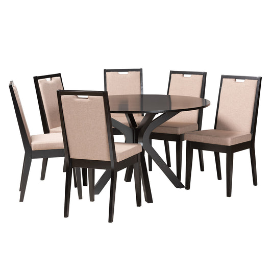 Baxton Studio Mana Modern Sand Fabric and Dark ... Baxton Studio Mana Modern Sand Fabric and Dark Brown Finished Wood 7-Piece Dining Set