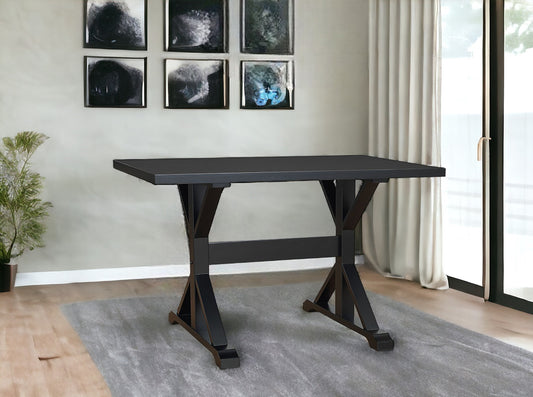 Black Solid Wood Trestle Base Dining Table By H... Black Solid Wood Trestle Base Dining Table By Homeroots