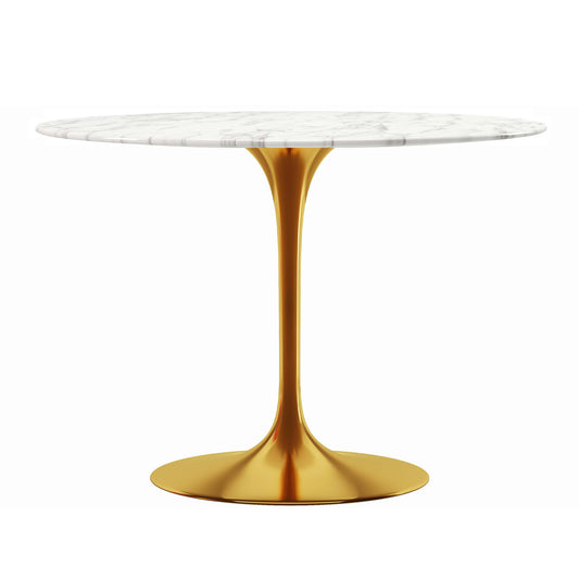 White And Gold Rounded Marble And Metal Pedesta... White And Gold Rounded Marble And Metal Pedestal Base Dining Table By Homeroots