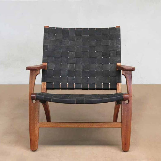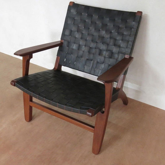 Masaya Lounge Chair - Black Leather And Teak Masaya Lounge Chair - Black Leather And Teak