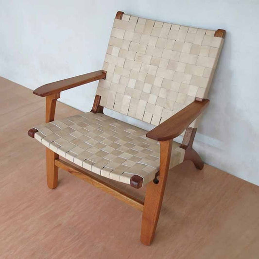 Masaya Lounge Chair - Natural Leather And Teak Masaya Lounge Chair - Natural Leather And Teak
