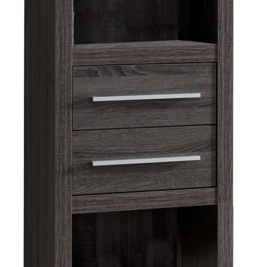 Wooden Media Tower With 2 Drawers And 3 Shelves... Wooden Media Tower With 2 Drawers And 3 Shelves, Distressed Gray By Benzara