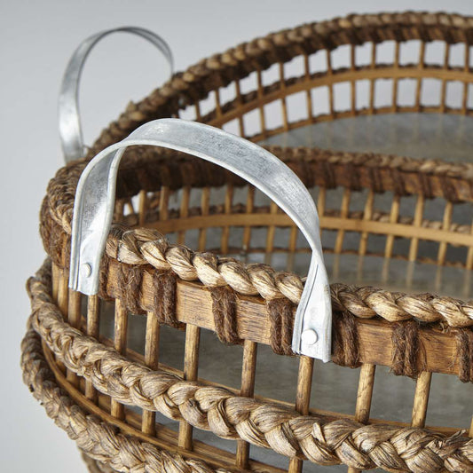 Round Shaped Bamboo Tray With Curved Handle, Se... Round Shaped Bamboo Tray With Curved Handle, Set Of 2, Brown By Benzara