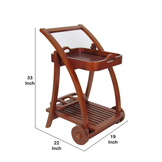 Slatted Shelf Serving Foldable Tray Stand With ... Slatted Shelf Serving Foldable Tray Stand With Wheels, Brown By Benzara