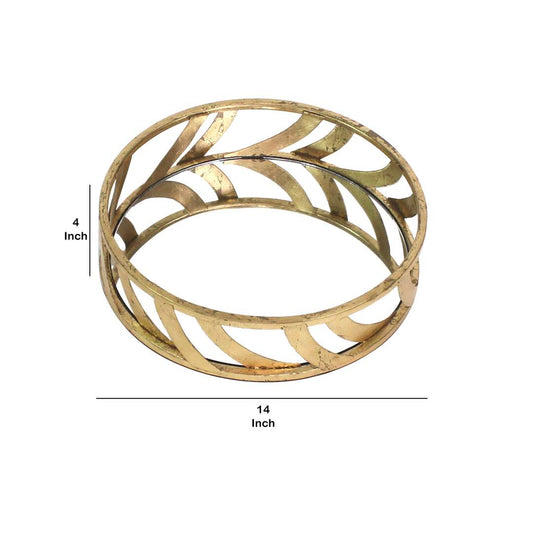 Round Metal Streamline Tray With Mirror Panel I... Round Metal Streamline Tray With Mirror Panel Inserts, Gold And Silver By Benzara