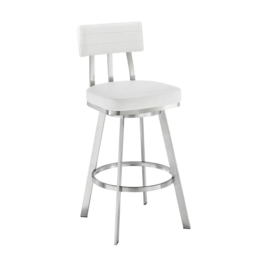 Lynof Swivel Bar Stool in Brushed Stainless Ste... Lynof Swivel Bar Stool in Brushed Stainless Steel with White Faux Leather By Armen Living