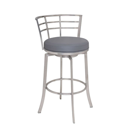 Justin 26" Counter Height Swivel Vintage Gray F... Justin 26" Counter Height Swivel Vintage Gray Faux Leather Bar Stool with Brushed Stainless Steel Legs By Armen Living