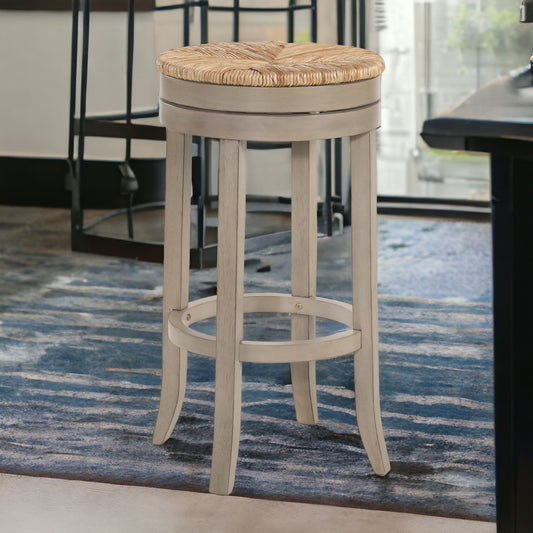 Gray And Antiqued White Solid Wood Swivel Backl... Gray And Antiqued White Solid Wood Swivel Backless Bar Height Bar Chair By Homeroots