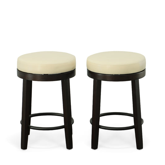Set of Two Cream and Espresso Faux Leather and ... Set of Two Cream and Espresso Faux Leather and Solid Wood Backless Counter Height Swivel Bar Chairs By Homeroots