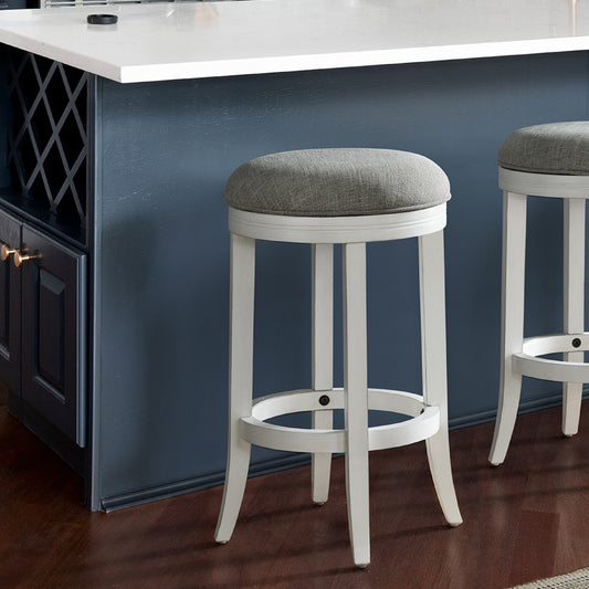 Gray And Antiqued White Solid Wood Swivel Backl... Gray And Antiqued White Solid Wood Swivel Backless Counter Height Bar Chair By Homeroots