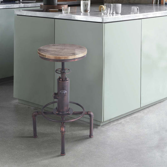Remy Adjustable Height Pine Wood and Copper Bac... Remy Adjustable Height Pine Wood and Copper Backless Bar Stool By Armen Living