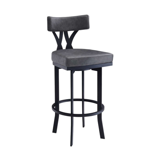 Vander 30" Gray Faux Leather and Black Metal Sw... Vander 30" Gray Faux Leather and Black Metal Swivel Bar Stool By Armen Living