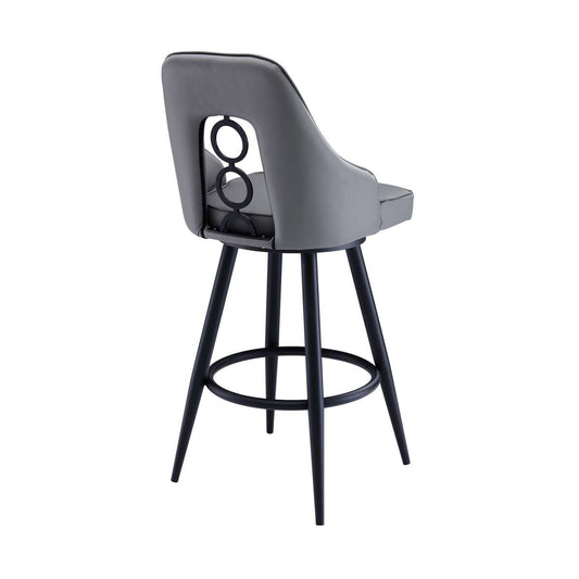 Roman 30" Gray Faux Leather and Black Metal Swi... Roman 30" Gray Faux Leather and Black Metal Swivel Bar Stool By Armen Living