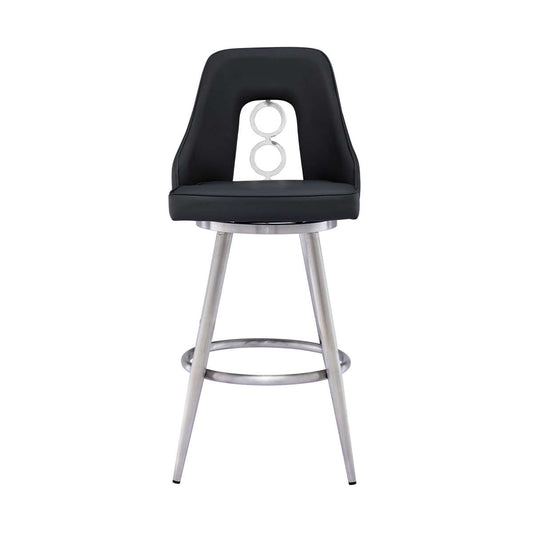 Prinz 26" Counter Height Swivel Black Faux Leat... Prinz 26" Counter Height Swivel Black Faux Leather and Brushed Stainless Steel Bar Stool By Armen Living