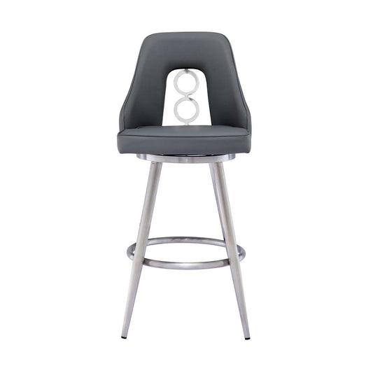 Vander 26" Gray Faux Leather and Brushed Stainl... Vander 26" Gray Faux Leather and Brushed Stainless Steel Swivel Bar Stool By Armen Living