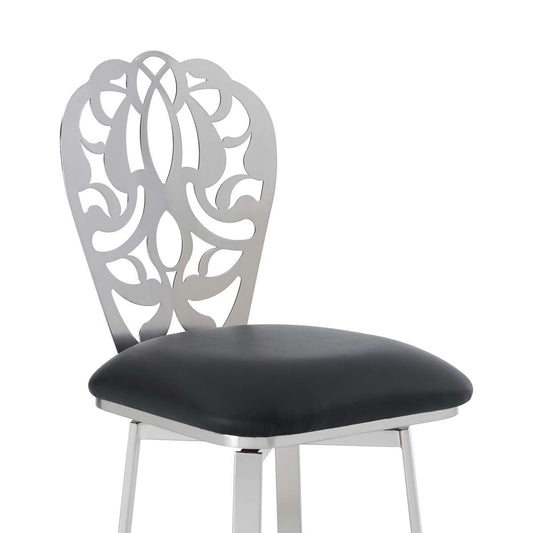 Cherie Contemporary 26" Counter Height Barstool... Cherie Contemporary 26" Counter Height Barstool in Brushed Stainless Steel Finish and Black Faux Leather By Armen Living