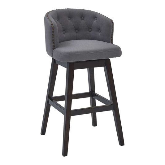 Celine 30" Bar Height Swivel Grey Fabric and Es... Celine 30" Bar Height Swivel Grey Fabric and Espresso Wood Bar Stool By Armen Living