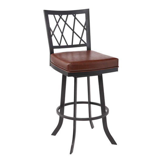 Journey 30" Bar Height Swivel Brown Onyx Faux L... Journey 30" Bar Height Swivel Brown Onyx Faux Leather and American Grey Wood Bar Stool By Armen Living