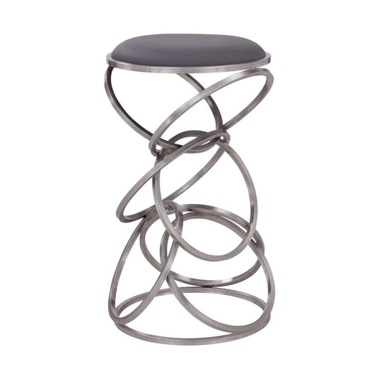 Gabriele 30" Gray Faux Leather and Brushed Stai... Gabriele 30" Gray Faux Leather and Brushed Stainless Steel Swivel Bar Stool By Armen Living