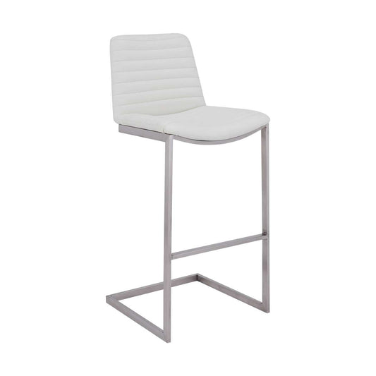 Lucas Contemporary 30" Bar Height Barstool in B... Lucas Contemporary 30" Bar Height Barstool in Brushed Stainless Steel Finish and White Faux Leather By Armen Living