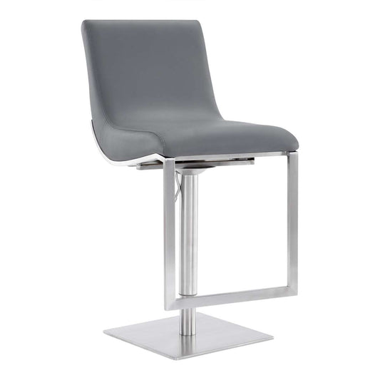 Saturn 30" Bar Height Swivel Grey Faux Leather ... Saturn 30" Bar Height Swivel Grey Faux Leather and Brushed Stainless Steel Bar Stool By Armen Living