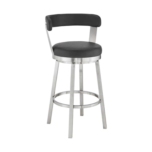 Kobe 30" Bar Height Swivel Bar Stool in Brushed... Kobe 30" Bar Height Swivel Bar Stool in Brushed Stainless Steel Finish and Black Faux Leather By Armen Living