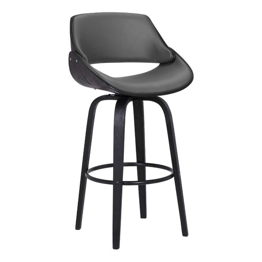Gerty 26" Swivel Grey Faux Leather and Black Wo... Gerty 26" Swivel Grey Faux Leather and Black Wood Bar Stool By Armen Living