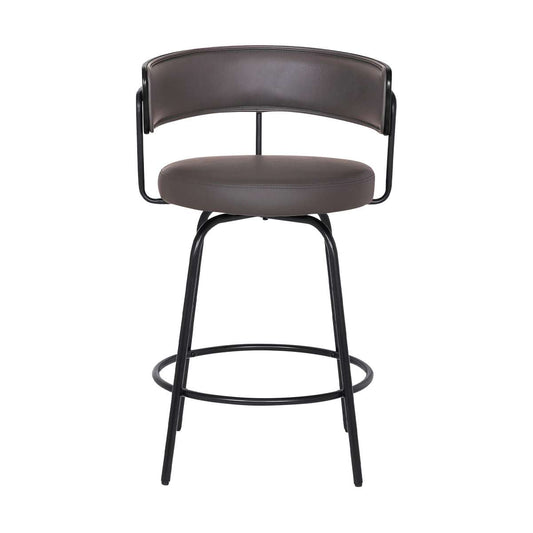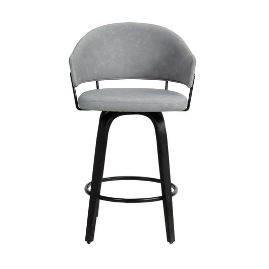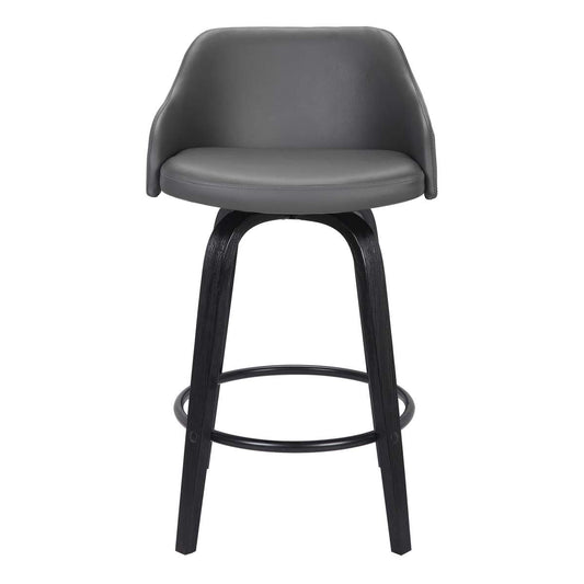 Arya 26" Swivel Counter Stool in Gray Faux Leat... Arya 26" Swivel Counter Stool in Gray Faux Leather and Black Wood By Armen Living