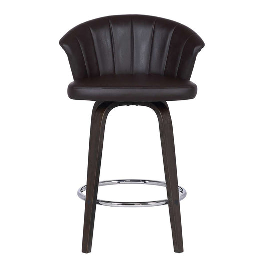 Crux 26" Swivel Counter Stool in Brown Faux Lea... Crux 26" Swivel Counter Stool in Brown Faux Leather and Walnut Wood By Armen Living