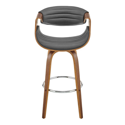 Arya 30" Swivel Bar Stool in Gray Faux Leather ... Arya 30" Swivel Bar Stool in Gray Faux Leather and Walnut Wood By Armen Living