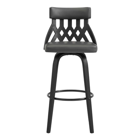 Crux 30" Swivel Bar Stool in Gray Faux Leather ... Crux 30" Swivel Bar Stool in Gray Faux Leather and Black Wood By Armen Living