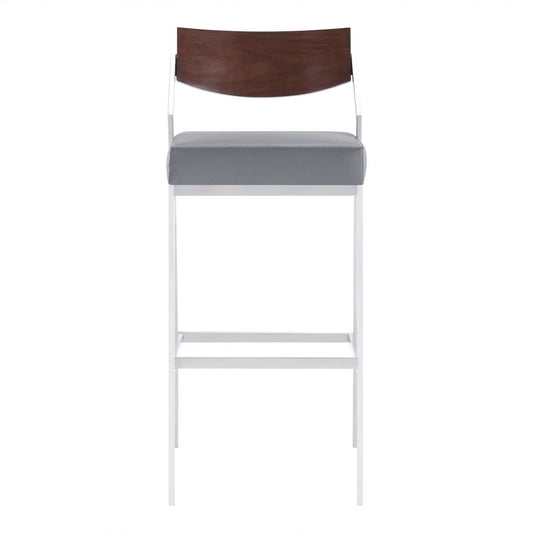 Dakota Mid-Century 30" Counter Height Barstool ... Dakota Mid-Century 30" Counter Height Barstool in Brushed Stainless Steel with Gray Faux Leather and Walnut Wood Finish Back By Armen Living