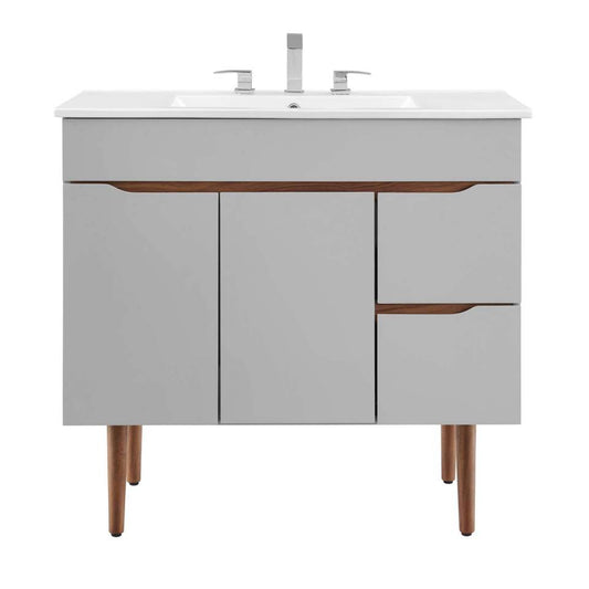 Modway Cassia 36" Bathroom Vanity - EEI-5109 ce... Modway Cassia 36" Bathroom Vanity - EEI-5109 ceramic sink basin integrated countertop Teak Wood Construction Spacious Bottom Drawer