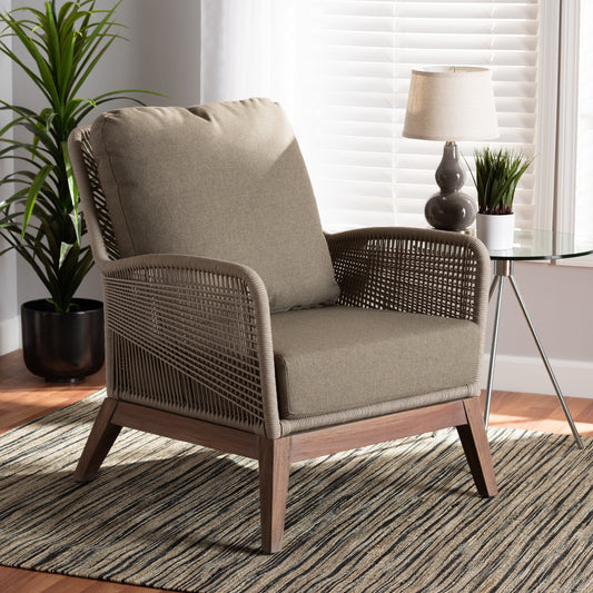 Baxton Studio Sage Modern Japandi Light Grey Fa... Baxton Studio Sage Modern Japandi Light Grey Fabric and Walnut Brown Finished Wood Arm Chair with Woven Rattan