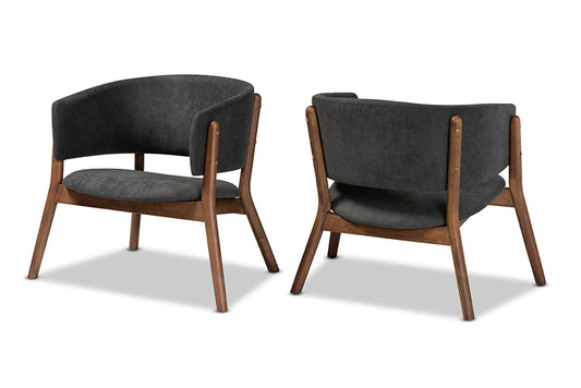 Baxton Studio Baron Mid-Century Modern Dark Gre... Baxton Studio Baron Mid-Century Modern Dark Grey Fabric Upholstered and Walnut Brown Finished Wood 2-Piece Living Room Accent Chair Set