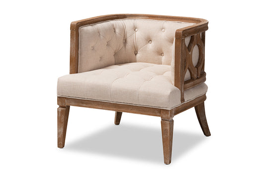 Baxton Studio Esme French Provincial Beige Line... Baxton Studio Esme French Provincial Beige Linen Fabric Upholstered and White-Washed Oak Wood Accent Barrel Chair