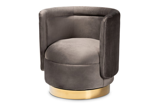 Baxton Studio Saffi Glam and Luxe Grey Velvet F... Baxton Studio Saffi Glam and Luxe Grey Velvet Fabric Upholstered Gold Finished Swivel Accent Chair