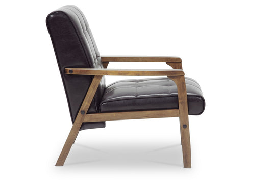 Baxton Studio Sigrid Mid-Century Modern Dark Br... Baxton Studio Sigrid Mid-Century Modern Dark Brown Faux Leather Effect Fabric Upholstered Antique Oak Finished Wood Armchair