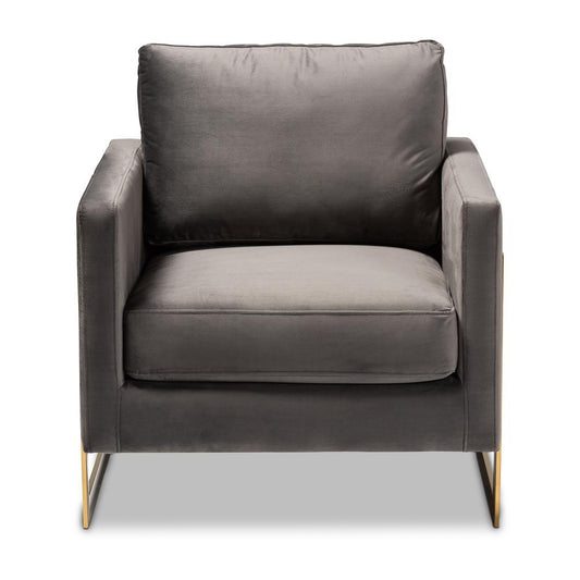 Baxton Studio Aveline Glam and Luxe Grey Velvet... Baxton Studio Aveline Glam and Luxe Grey Velvet Fabric Upholstered Brushed Gold Finished Armchair