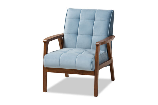 Baxton Studio Asta Mid-Century Modern Light Blu... Baxton Studio Asta Mid-Century Modern Light Blue Velvet Fabric Upholstered Walnut Finished Wood Armchair