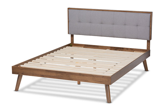 Baxton Studio Alke Mid-Century Modern Light Gre... Baxton Studio Alke Mid-Century Modern Light Grey Fabric Upholstered Walnut Brown Finished Wood Queen Size Platform Bed