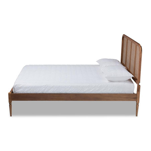Baxton Studio Aithan Mid-Century Walnut Brown W... Baxton Studio Aithan Mid-Century Walnut Brown Wood and Rattan Queen Size Platform Bed