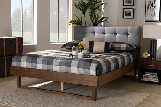 Baxton Studio Dilara Mid-Century Modern Dark Gr... Baxton Studio Dilara Mid-Century Modern Dark Grey Fabric Upholstered Walnut Brown Finished Wood Full Size Platform Bed