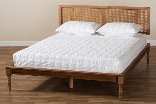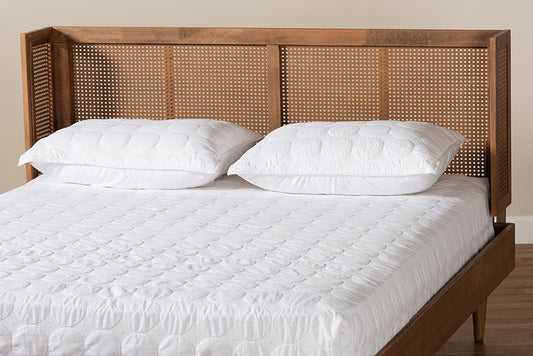 Baxton Studio Rina Mid-Century Modern Ash Wanut... Baxton Studio Rina Mid-Century Modern Ash Wanut Finished Wood and Synthetic Rattan Queen Size Platform Bed with Wrap-Around Headboard