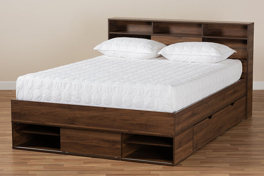 Baxton Studio Tristan Modern and Contemporary W... Baxton Studio Tristan Modern and Contemporary Walnut Brown Finished Wood 1-Drawer Queen Size Platform Storage Bed with Shelves