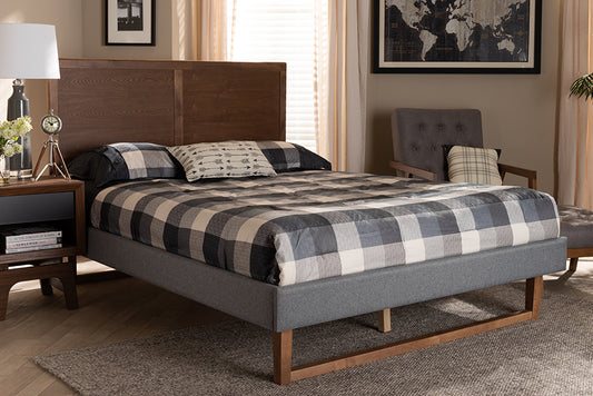 Baxton Studio Natalia Mid-Century Modern Dark G... Baxton Studio Natalia Mid-Century Modern Dark Grey Fabric Upholstered and Ash Walnut Finished Wood Queen Size Platform Bed