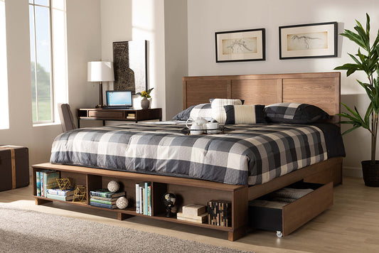 Baxton Studio Piera Modern and Contemporary Tra... Baxton Studio Piera Modern and Contemporary Transitional Ash Walnut Brown Finished Wood King Size 3-Drawer Platform Storage Bed